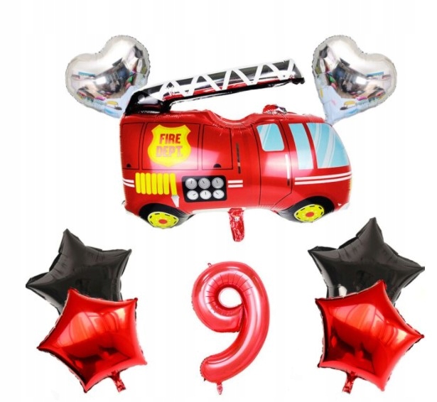 Zestaw balonów dziewiąte urodziny 9 Strażaka Straż