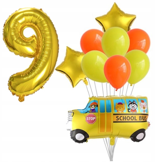 Zestaw balonów dziewiąte urodziny 9 autobus szkoln