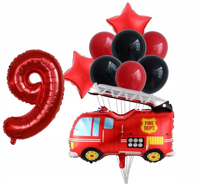 Zestaw balonów dziewiąte urodziny Wóz Strażacki