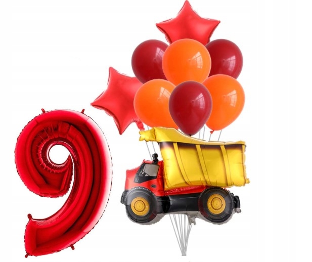 Zestaw balonów dziewiąte urodziny ciężarówka auto