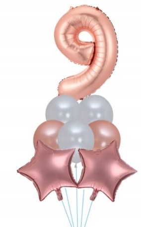 Zestaw balonów dziewiąte urodziny rose gold gwiazd