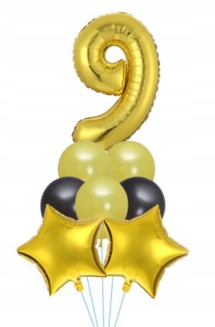 Zestaw balonów dziewiąte urodziny złote czarne