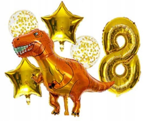 Zestaw balonów hel urodzinowe 8 urodziny dinozaur