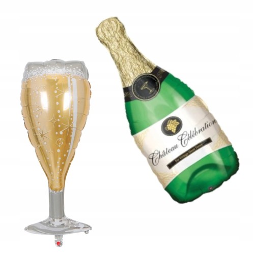 Zestaw balonów kieliszek + butelka szampana hel