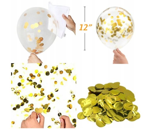 - 5 szt balon transparentny ze złotym konfetti duży 12" około 32 cm