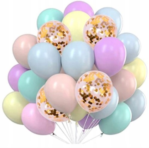 Zestaw balonów konfetti pastelowe urodziny roczek