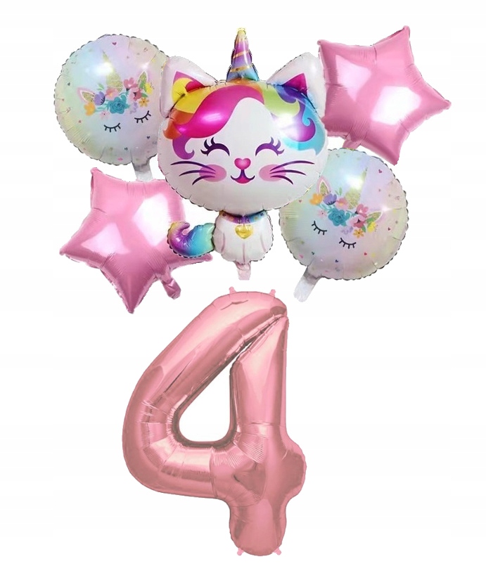 Zestaw balonów kotek na czwarte 4 urodziny różowy