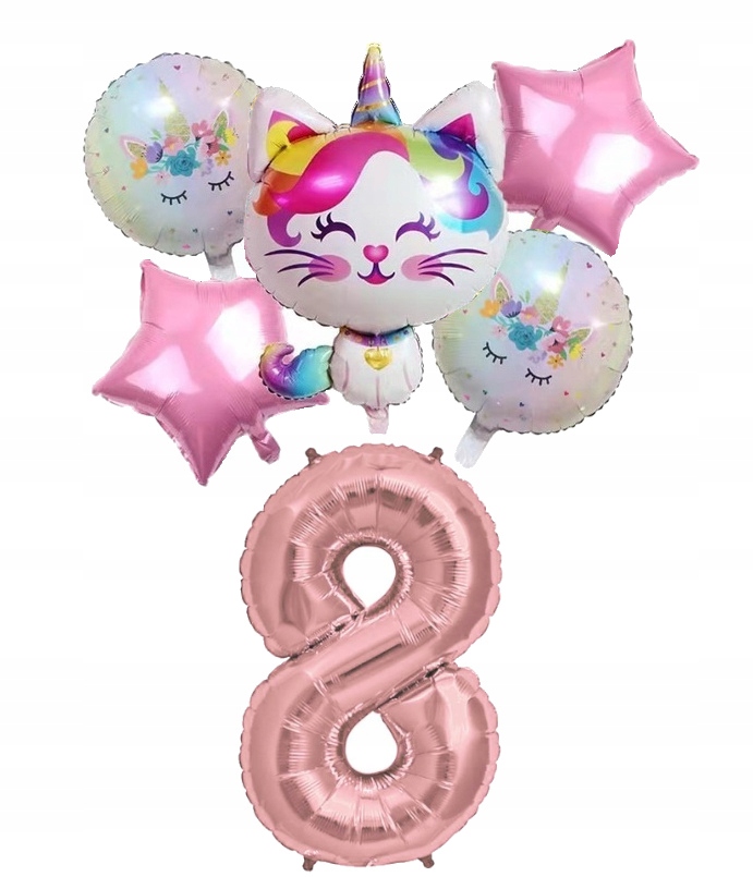 Zestaw balonów kotek na ósme 8 urodziny różowy