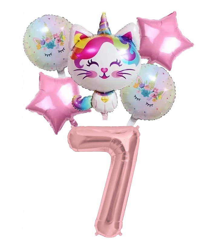 Zestaw balonów kotek na siódme 7 urodziny różowy
