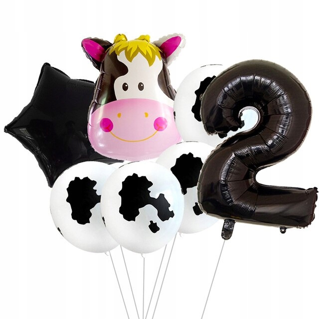 Zestaw balonów krowa 2 drugie urodziny farma hel
