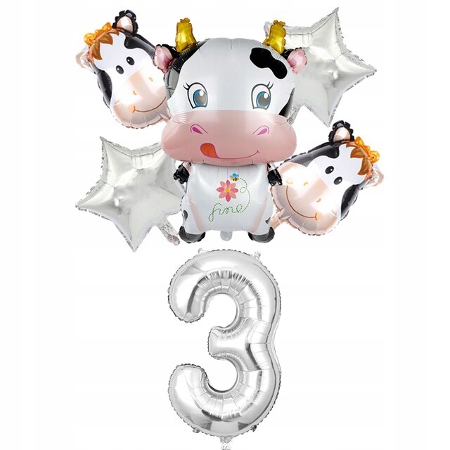 Zestaw balonów krowa 3 trzecie urodziny zwierzątka