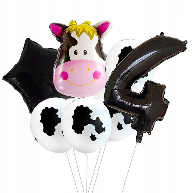 Zestaw balonów krowa 4 czwarte urodziny farma hel