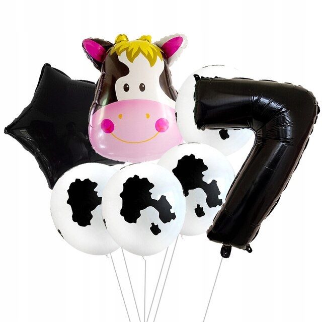 Zestaw balonów krowa 7 siódme urodziny farma hel