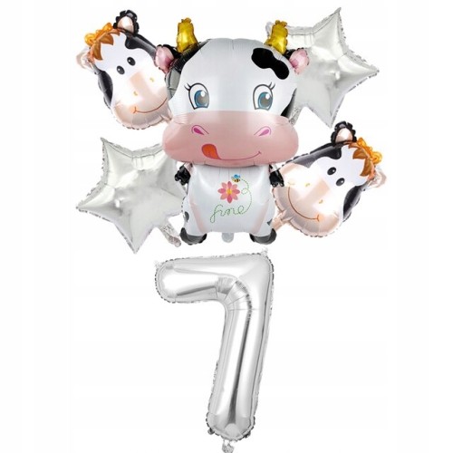 Zestaw balonów krowa 7 siódme urodziny zwierzątka
