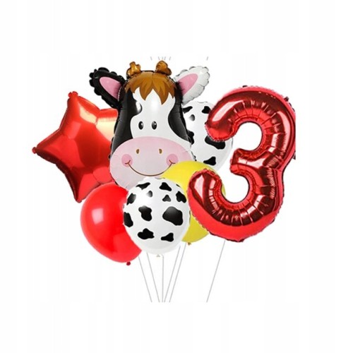 Zestaw balonów krowa trzecie 3 urodziny zwierzątko