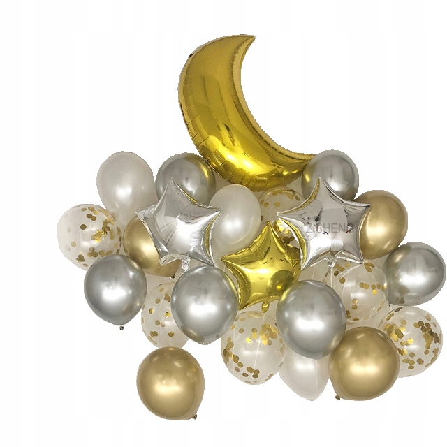 Zestaw balonów księżyc gwiazdy złoty srebrny 22szt