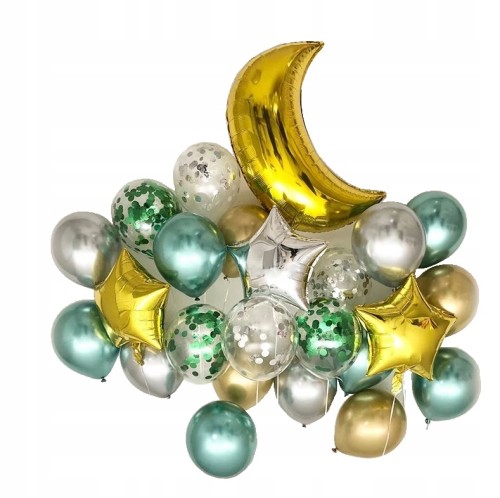 Zestaw balonów księżyc gwiazdy złoty srebrny 24szt