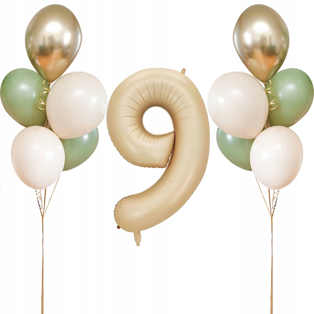 Zestaw balonów na dziewiąte 9 urodziny ecru złoty