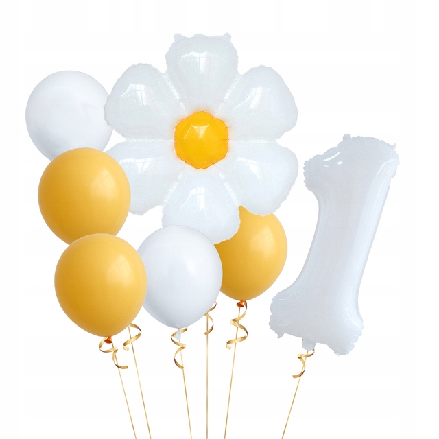 Zestaw balonów na roczek 1 pierwsze urodziny kwiat