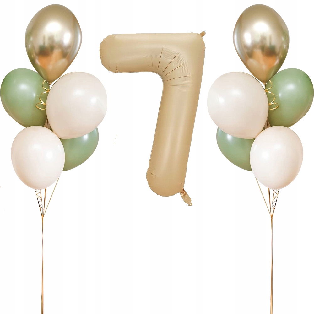 Zestaw balonów na siódme 7 urodziny kremowy złoty