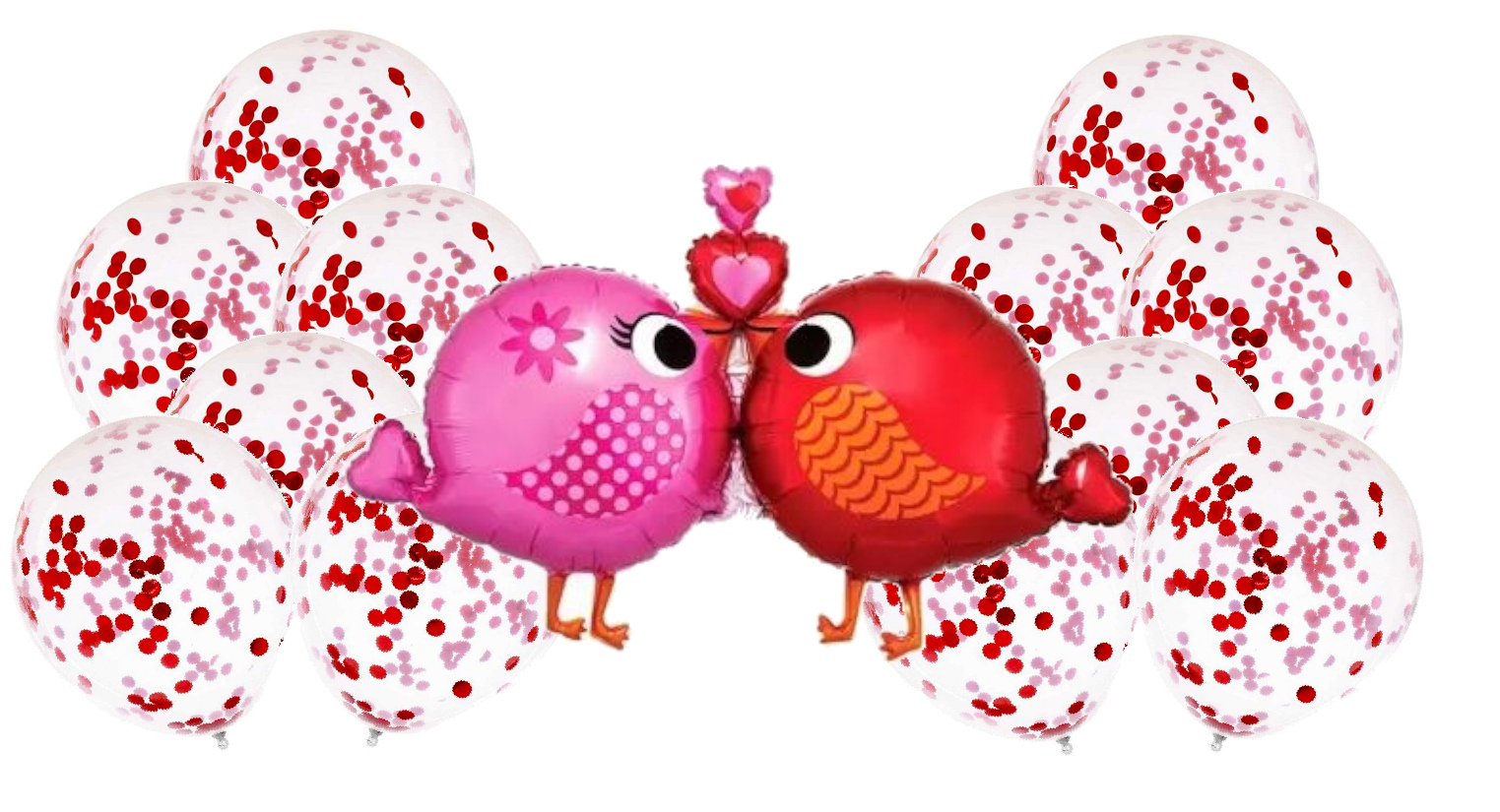 Zestaw balonów na walentynki ptaszki serduszka hel