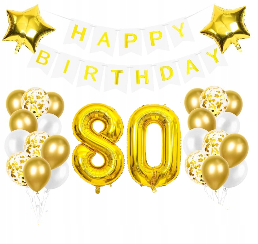 Zestaw balonów osiemdziesiątka 80 złote białe bane
