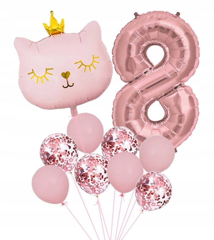 Zestaw balonów ósme 8 urodziny kotek różowy hel