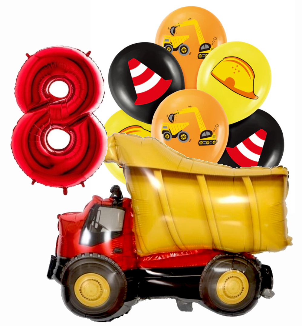 Zestaw balonów ósme 8 urodziny pojazdy wywrotka