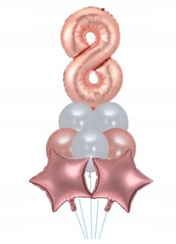 Zestaw balonów ósme 8 urodziny rose gold gwiazda