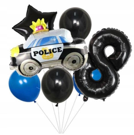 Zestaw balonów ósme 8 urodziny samochód policja