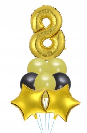 Zestaw balonów ósme urodziny złote czarne balony