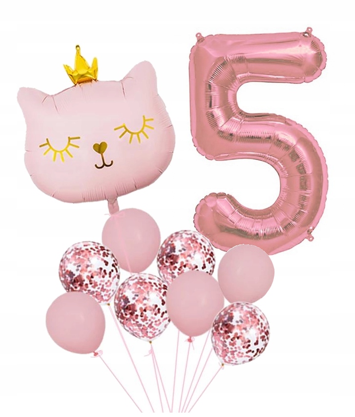 Zestaw balonów piąte 5 urodziny kotek różowy hel