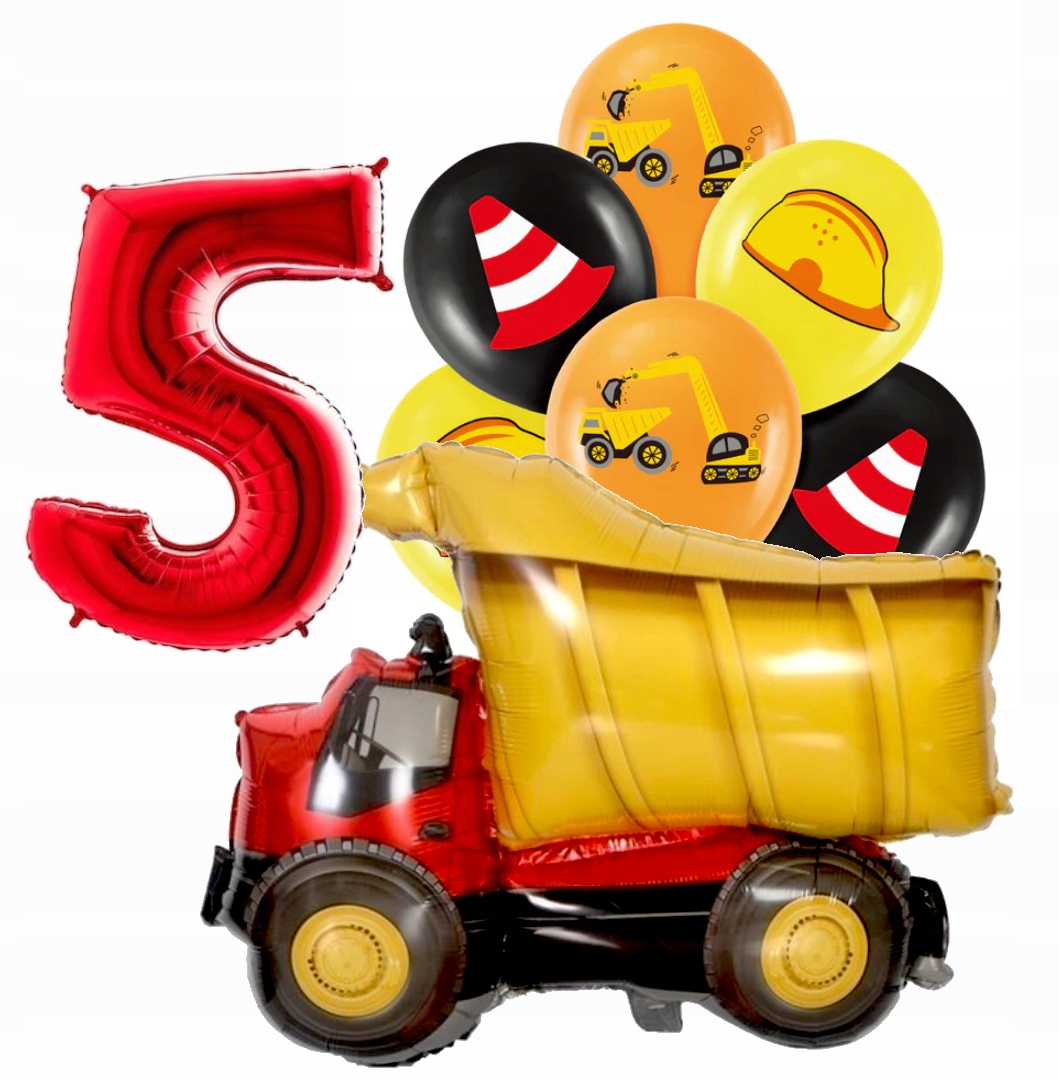 Zestaw balonów piąte 5 urodziny pojazdy wywrotka