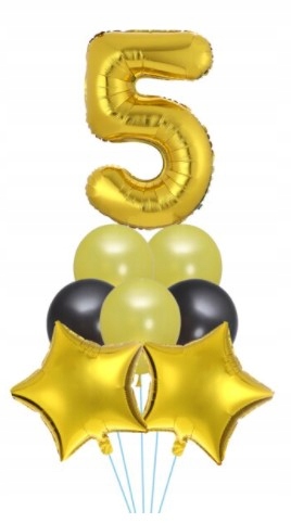 Zestaw balonów piąte urodziny złote czarne balon