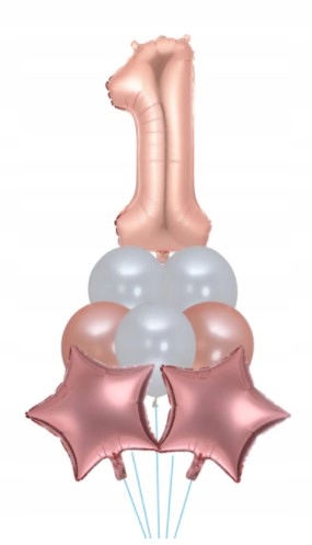 Zestaw balonów pierwsze urodziny rose gold roczek