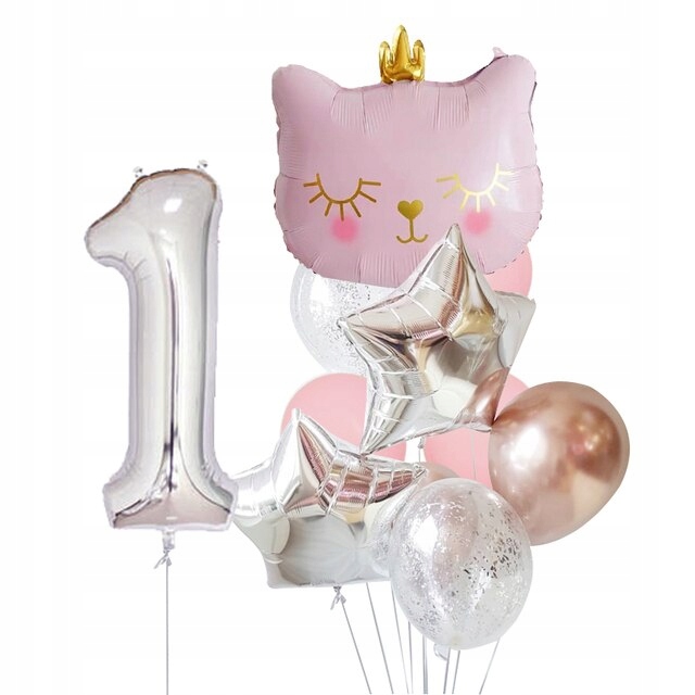 Zestaw balonów roczek 1 pierwsze urodziny kot róż