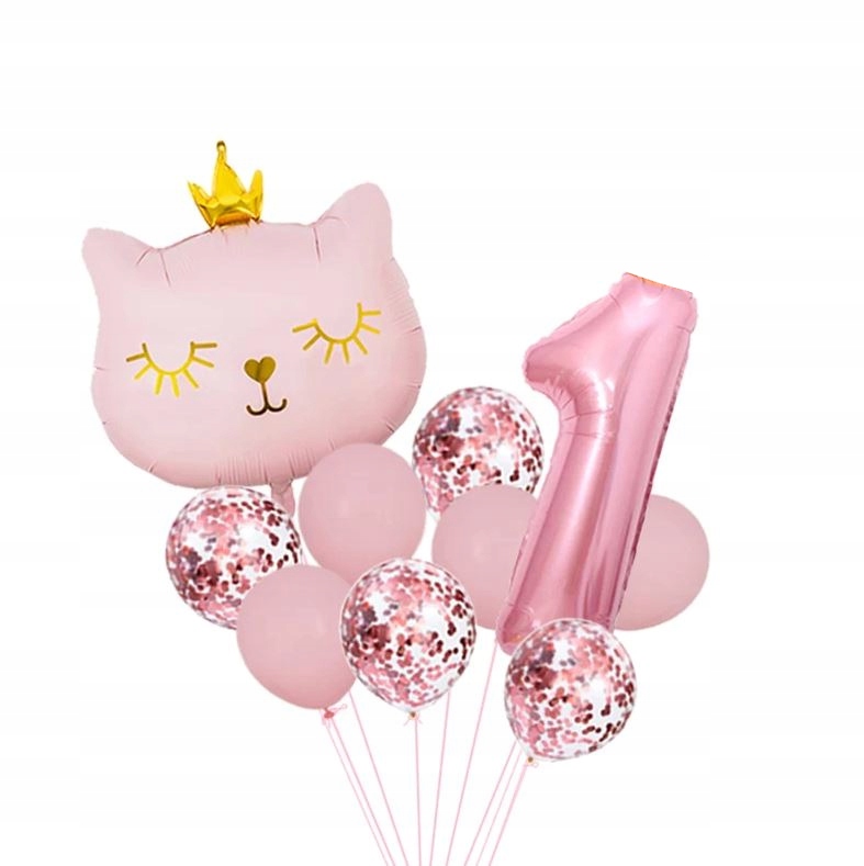 Zestaw balonów roczek 1 pierwsze urodziny kot róż