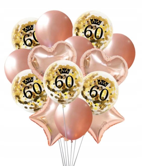 Zestaw balonów rose gold konfetti na 60 urodziny