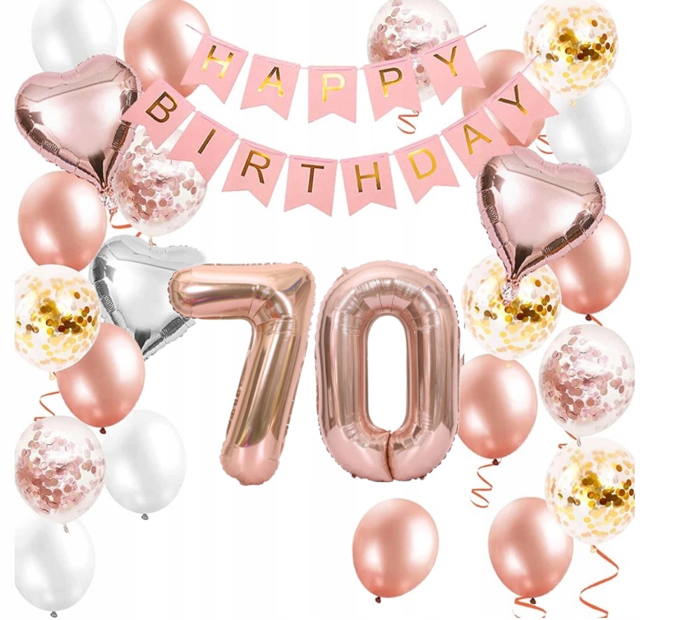 Zestaw balonów siedemdziesiątka 70 rose gold baner