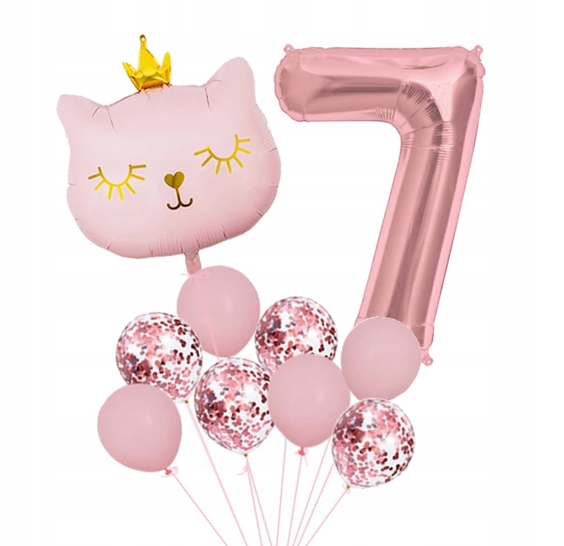Zestaw balonów siódme 7 urodziny kotek różowy hel