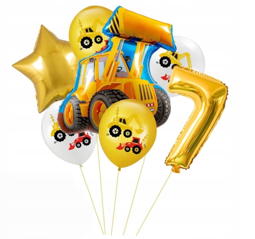 Zestaw balonów siódme 7 urodziny pojazdy koparka