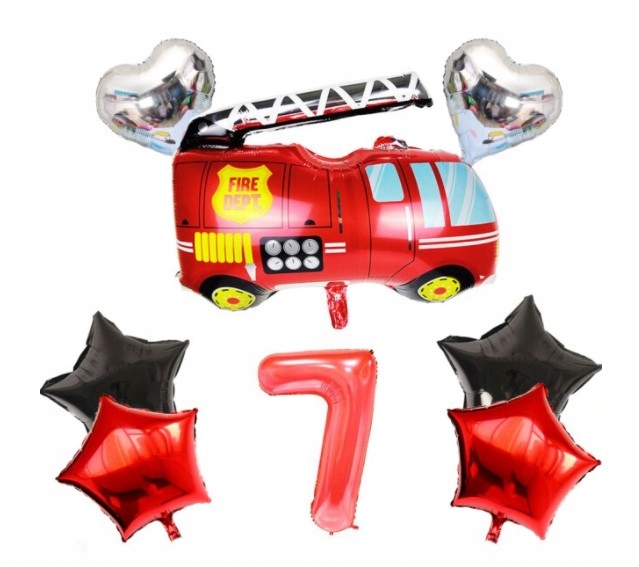 Zestaw balonów siódme urodziny 7 Strażaka Straż