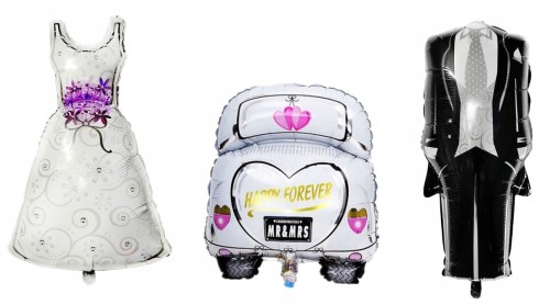 Zestaw balonów suknia ślubna garnitur samochód