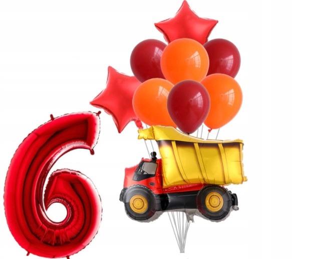 Zestaw balonów szóste 6 urodziny ciężarówka pojazd