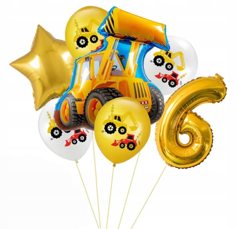 Zestaw balonów szóste 6 urodziny pojazdy koparka