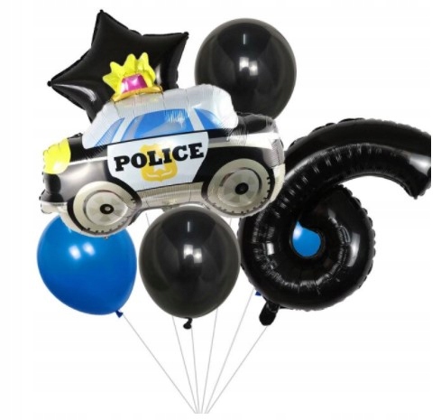 Zestaw balonów szóste 6 urodziny samochód policja
