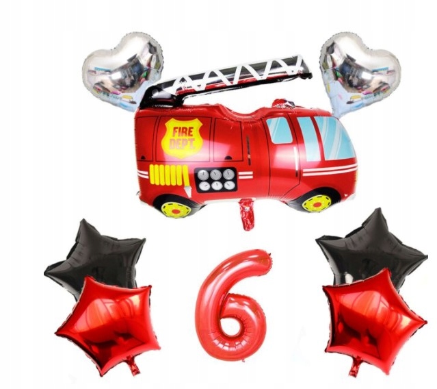 Zestaw balonów szóste urodziny 6 Strażaka Straż