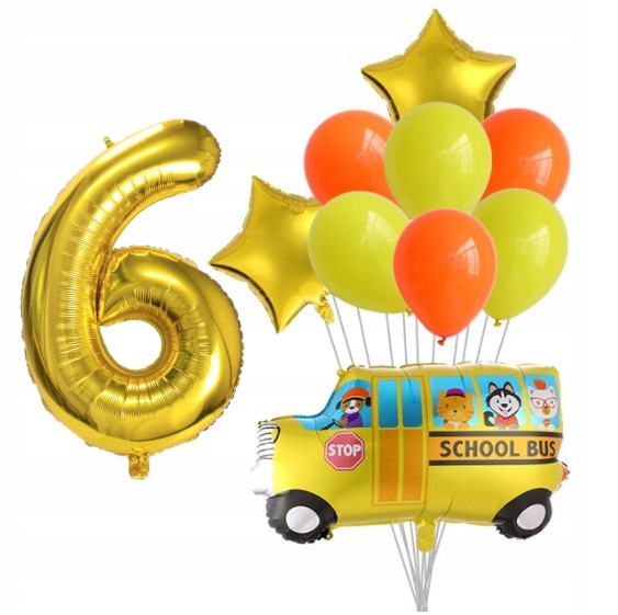 Zestaw balonów szóste urodziny 6 autobus szkolny