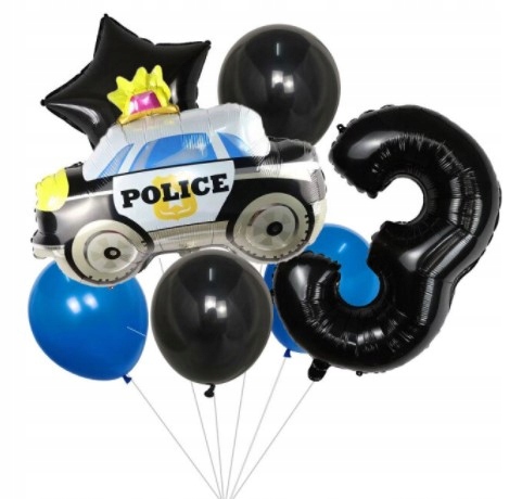 Zestaw balonów trzecie 3 urodziny samochód policja