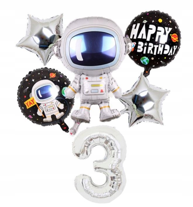- 1 szt. - balon foliowy kosmonauta w rozmiarze ok. 74 cm x 50 cm